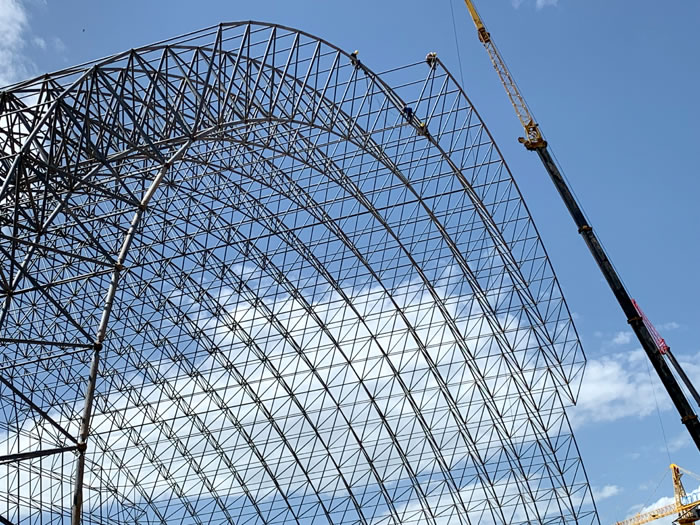 (2)网架加工前应对现场尺寸进行复测,确认无误后方可进行加工、安装;网架制作、运输、安装应遵守《空间网格结构技术规程》JGJ7-2010、《钢网架虹口螺栓球节点》JG/T 10-2009、《钢网架虹口螺栓球节点用高强度螺栓》 GB/T 16939-2016、《虹口钢结构虹口工程虹口施工规范》 GB50755-2012、《虹口钢结构虹口工程施工质量验收标准》 GB50205-2020。